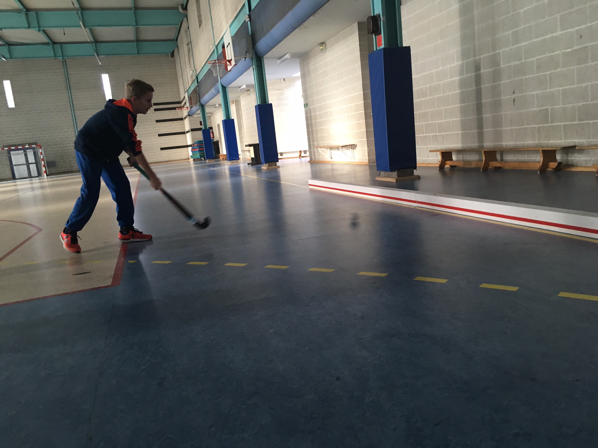 Les U16 et U14 (plus précis !) ont réalisé les mesures et poses des bandes de chant (oui bah voilà comme ça vous savez, la bande rouge horizontale qui protège le bois de la bande et permet le rebond de la balle et bien ça s’appelle comme ça!).